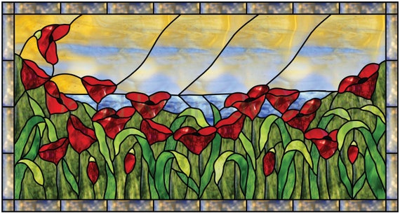 Buy Poppies Horizontal Stained Glass Pattern C David Kennedy Online In India Etsy